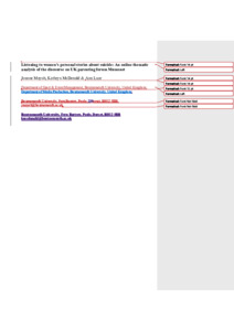 Mayoh, J., McDonald, K. and Luce, A., 2024. Listening to women’s personal stories about suicide: An online thematic analysis of the discourse on UK parenting forum Mumsnet. Feminist Media Studies. (In Press)