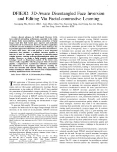 Zhu, X., Zhou, J., You, L., Yang, X., Chang, J., Zhang, J. J. and Zeng, D., 2024. DFIE3D: 3D-Aware Disentangled Face Inversion and Editing Via Facial-contrastive Learning. IEEE Transactions on Circuits and Systems for Video Technology, 34 (9), 8310-8326.