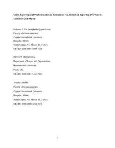 Fai, P. B., Bayighomog, S. W. and Stubbs, J., 2024. Crisis Reporting and Professionalism in Journalism: An Analysis of Reporting Practices in Cameroon and Nigeria. Journalism Practice. (In Press)