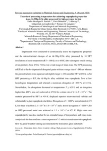 Pereira, P. H. R., Bazarnik, P., Huang, Y., Lewandowska, M. and Langdon, T. G., 2024. The role of processing temperature for achieving superplastic properties in an Al-3Mg-0.2Sc alloy processed by high-pressure torsion. Materials Science & Engineering: A, 916, 147320.