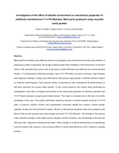 Al Hadidi, H., Anand, M. and Simandjuntak, S., 2024. Investigation of the effect of alkaline environment on mechanical properties of additively manufactured 17-4 PH Stainless Steel parts produced using recycled metal powder. In: da Silva, L. F. M., ed. Materials Design and Applications V. Cham: Springer, 103-116.
