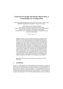 Kempapidis, T., Mavridou, I., Seiss, E., Castle, C. L., Bradwell, D., Panchevski, F., Cox, S. and Gomes, R. S. M., 2025. Visual Search in People with Macular Degeneration: A Virtual Reality Eye-Tracking Study. In: Reyes-Lecuona, A., Zachmann, G., Bordegoni, M., Chen, J., Karaseitanidis, G., Pagani, A. and Bourdot, P., eds. Virtual Reality and Mixed Reality: 21st EuroXR International Conference, EuroXR 2024. Cham: Springer, 182-203.