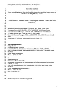 Rochat, N., Iodice, P., Ferrand, L., Parris, B. A. and Augustinova, M., 2024. Exercise caution: some methodological and theoretical considerations when examining improvements in attentional selectivity following exercise. International Review of Sport and Exercise Psychology. (In Press)