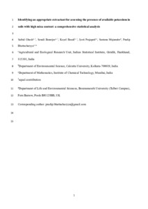 Ghosh, S., Banerjee, S., Basak, K., Prajapati, J., Majumder, S. and Bhattacharyya, P., 2025. Identifying an Appropriate Extractant for Assessing the Presence of Available Potassium in Soils with High Mica Content: A Comprehensive Statistical Analysis. Communications in Soil Science and Plant Analysis, 56 (8), 1145- 1161.