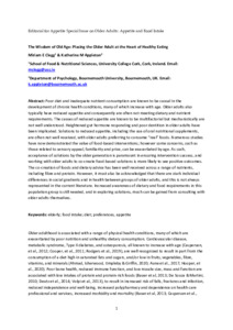 Clegg, M. E. and Appleton, K. M., 2025. The Wisdom of Old Age: Placing the older adult at the heart of healthy eating. Appetite, 205, 107602.