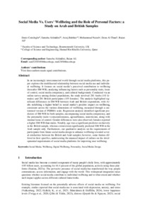 Cemiloglu, D., Alshakhsi, S., Babiker, A., Naiseh, M., Al-Thani, D. and Ali, R., 2025. Social Media Vs. Users’ Wellbeing and the Role of Personal Factors: A Study on Arab and British Samples. International Journal of Human-Computer Interaction. (In Press)
