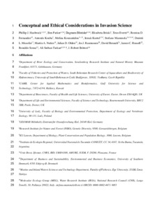 Haubrock, P. J., Parker, B., Błońska, D., Briski, E., Everts, T, Fernandez, R. D., Kouba, A., Kourantidou, M., Kurtul, I., Mammola, S., Musolin, D. L., Nuñez, M. A., Olden, J. D., Rasmussen, J. J., Renault, D., Russell, J. C., Sousa, R., Tarkan, A. S. and Britton, J. R., 2025. Conceptual and ethical considerations in invasion science. Bioscience, 75 (4), 317-330.