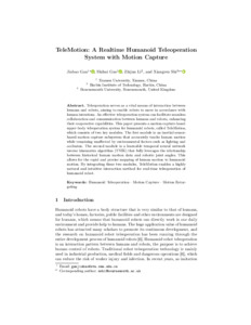 Gan, J., Guo, S., Li, Z. and Shi, X., 2025. TeleMotion: A Realtime Humanoid Teleoperation System with Motion Capture. In: Song, W., Guan, F., Li, S. and Zhang, G., eds. Extended Reality. ICXR 2024. Cham: Springer, 31-45.