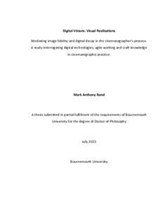 Bond, M. A., 2025. Digital Visions: Visual Realisations. Mediating image fidelity and digital decay in the cinematographer’s process. A study interrogating digital technologies, agile working and craft knowledge in cinematographic practice. Doctoral Thesis (Doctoral). Bournemouth University.
