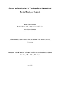 Williams, N. F., 2025. Causes and Implications of Fox Population Dynamics in Central Southern England. Doctoral Thesis (Doctoral). Bournemouth University.