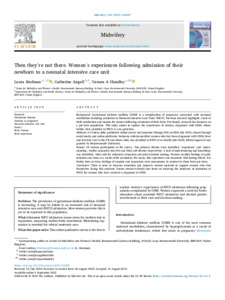 Stedman, L., Angell, C. and Hundley, V., 2025. Then they’re not there. Women’s experiences following admission of their newborn to a neonatal intensive care unit. Midwifery, 150, 104587.