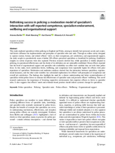| Uncontrolled Keywords: | Police specialism; Policing; Specialist units; Police officers; Wellbeing; Organisational support |