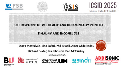 Montalvao, D., Safari, S., Sewell, P., Abdelkader, A., Baxter, R., Johnston, I. and McCluskey, D., 2025. Ultrasonic fatigue response of vertically and horizontally printed Ti-6al-4v and Inconel 718. In: 8th International Conference on Structural Integrity and Durability - ICSID 2025, 16-19 September 2025, Dubrovnik, Croatia.