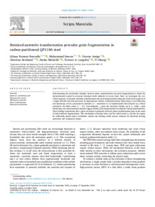 Romero Resendiz, L., Naeem, M., Amigó, V., Reinhard, C., Michalik, S., Langdon, T. G. and Huang, Y., 2025. Retained-austenite transformation precedes grain fragmentation in carbon-partitioned QP1180 steel. Scripta Materialia, 271, 117024.