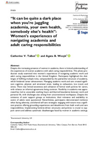 Talbot, C. V. and Wezyk, A. B., 2025. “It can be quite a dark place when you're juggling academia, your own health, somebody else's health”: Women’s experiences of navigating academia and adult caring responsibilities. Feminism & Psychology. (In Press)