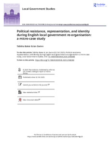 Political resistance representation and identity during English local government re-organisation a micro-case study.pdf - Published Version Available under License Creative Commons Attribution Non-commercial No Derivatives. 1MB |