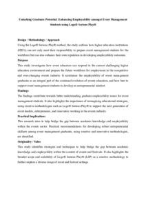 Henderson, H. E. and Shipway, R., 2025. Unlocking Graduate Potential: Enhancing Employability amongst Event Management Students using Lego® Serious Play®. International Journal of Event and Festival Management. (In Press)