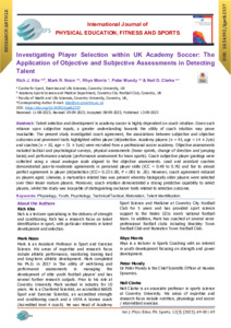 Kite, R. J., Noon, M. R., Morris, R., Mundy, P. and Clarke, N. D., 2023. Investigating Player Selection within UK Academy Soccer: The Application of Objective and Subjective Assessments in Detecting Talent. International Journal of Physical Education, Fitness and Sport, 12 (3), 69-83.