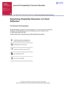 Giousmpasoglou, C., 2025. Reclaiming hospitality education: A critical reflection. Journal of Hospitality and Tourism Education. (In Press)