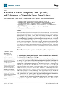 Bush-Evans, R. D., Hart, C. M., Cisek, S. Z., Satchell, L. P. and Sedikides, C., 2025. Narcissism in action: Perceptions, team dynamics, and performance in naturalistic escape room settings. Journal of Behavioural Sciences, 15 (11), 1461.