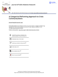 Read, D. and Lock, D., 2025. A categorical reframing approach to crisis communications. Journal of Public Relations Research. (In Press)