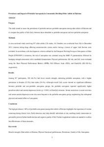| Uncontrolled Keywords: | muscle strength; older adults in Pakistan; physical functional performance; prevalence; quality of life; Sarcopenia |