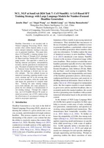 Zhao, J., Wang, Y., Liang, H. and Rusnachenko, N., 2024. NCL_NLP at SemEval-2024 task 7: CoT-NumHG: A CoT-based SFT training strategy with large language models for number-focused headline generation. In: SemEval 2024, 20-21 June 2024, Mexico City, 261-269.