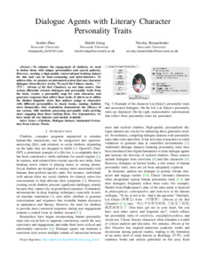 Zhao, J., Liang, H. and Rusnachenko, N., 2023. Dialogue agents with literary character personality traits. In: IEEE/WIC International Conference on Web Intelligence and Intelligent Agent Technology (WI-IAT), 26-29 October 2023, Venice, Italy, 189-196.