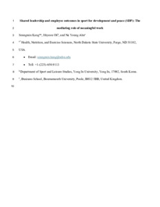 Kang, S., Oh, J. and Ahn, N. Y., 2025. Shared leadership and employee outcomes in sport for development and peace (SDP): The mediating role of meaningful work. Sport Management Review. (In Press)