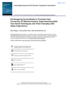 Gurgun, S., Arden-Close, E., Phalp, K. and Ali, R., 2025. Re-designing Social Media to Promote User Correction of Misinformation: Experimenting With Two Novel Techniques and Their Interplay with News Importance. International Journal of Human-Computer Interaction. (In Press)