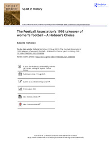 The Football Association s 1993 takeover of women s football A Hobson s Choice.pdf - Published Version Available under License Creative Commons Attribution Non-commercial No Derivatives. 731kB |