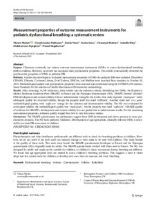 Purpose: Clinicians commonly use various outcome measurement instruments (OMIs) to assess dysfunctional breathing (DB) in children. However, no review has examined their psychometric properties. This article systematically reviewed the psychometric properties of OMIs in pediatric DB. Methods: Articles that developed or evaluated measurement properties of OMIs for pediatric DB were included. EbscoHost CINAHL Ultimate, Cochrane Library, Ovid Embase, EMCare, and Medline were searched from inception to October 10, 2024. Methodological quality and psychometric properties were assessed and synthesised using the COSMIN (COnsensus-based Standards for the selection of health Measurement INstruments) methodology. Results: After screening 14,240 references, three articles met the inclusion criteria, identifying two OMIs: the Hyperventilation Syndrome Ambroise-Paré (SHAPE) in French and the Nijmegen Questionnaire (NQ). SHAPE showed ‘doubtful’ OMI development and content validity with an ‘indeterminate’ rating for the results. One study reported ‘inadequate’ methodological quality for structural validity, though the property itself was rated ‘sufficient’. Another study had ‘very good’ methodological quality, with ‘sufficient’ ratings for the criterion and discriminative validity. The NQ was evaluated for convergent validity; the methodological quality was ‘inadequate’, but the property was rated ‘sufficient’. GRADE quality of evidence for SHAPE’s development and content validity was not graded due to indeterminate results. For the remaining measurement properties, evidence quality ranged from low to very low across studies. Conclusions: The SHAPE questionnaire has preliminary support from OMI development and shows promise in some psychometric domains. The NQ lacks pediatric validation. Development of age-appropriate, clinically relevant OMIs is essential for accurate DB assessment in children. PROSPERO No: CRD42024530540.
