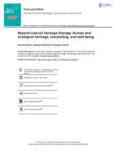 Sams, H., Heaslip, V. and Darvill, T., 2025. Beyond cultural heritage therapy: Human and ecological heritage, storytelling, and well-being. Time and Mind The Journal of Archaeology, Consciousness and Culture. (In Press)