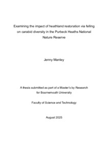 Manley, J., 2025. Examining the impact of heathland restoration via felling on carabid diversity in the Purbeck Heaths National Nature Reserve. Masters Thesis (Masters). Bournemouth University.