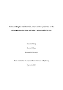 Stacey, C., 2025. Understanding the role of emotion, reward and food preference on the perception of sweet-tasting food using a novel classification task. Masters Thesis (Masters). Bournemouth University.