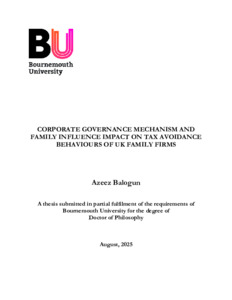 Balogun, A., 2025. Corporate governance mechanism and family influence impact on tax avoidance behaviours of UK family firms. Doctoral Thesis (Doctoral). Bournemouth University.