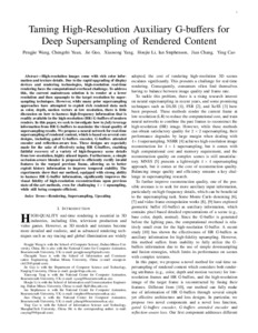 Taming_High_Resolution_Auxiliary_G_buffers_for_Deep_Supersampling_of_Rendered_Content_nocolor.pdf - Accepted Version Available under License Creative Commons Attribution Non-commercial. 28MB |