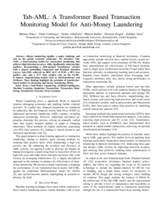 Oztas, B., Cetinkaya, D., Adedoyin, F., Budka, M., Dogan, H. and Aksu, G., 2025. Tab-AML: A Transformer Based Transaction Monitoring Model for Anti-Money Laundering. In: IEEE Conference on Artificial Intelligence (CAI). New York: IEEE, 161-167.