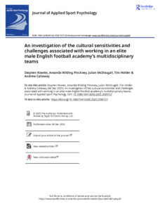 An investigation of the cultural sensitivities and challenges associated with working in an elite male English football academy s multidisciplinary te.pdf - Published Version Available under License Creative Commons Attribution Non-commercial No Derivatives. 1MB |