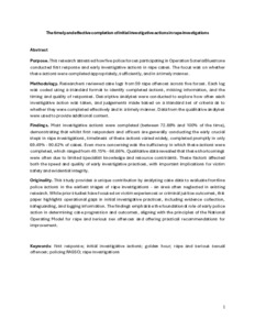Iliuta, A., Sayer, H., Horvath, M. A. H., Davies, K. and Khan, A., 2025. The timely and effective completion of initial investigative actions in rape investigations. Journal of Criminal Psychology, 15 (5), 603-618.