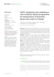 Cole, T., Oliver, L., Harvey, O., Healy, J., Sperryn, A. and Barbin, A., 2025. Up2U: designing and validating a new evidence-based programme for perpetrators of domestic abuse who want to change. Frontiers in Psychology, 16.