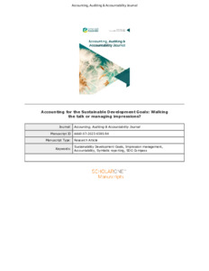 Awuah, B., Elbardan, H., Yazdifar, H. and Alexander, P., 2025. Accounting for the sustainable development goals: walking the talk or managing impressions? Accounting, Auditing & Accountability Journal.