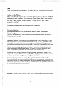 Carvalho, F., Qiu, S., Panagi, V., Hardy, K., Tutcher, H., Machado, M., Silva, F., Dinen, C., Lane, C., Jonroy, A., Knox, J., Worley, L., Whibley, J., Perren, T., Thain, J. and McPhail, J., 2023. Total pelvic exenteration surgery – considerations for healthcare professionals. European Journal of Surgical Oncology, 49 (1), 225-236.