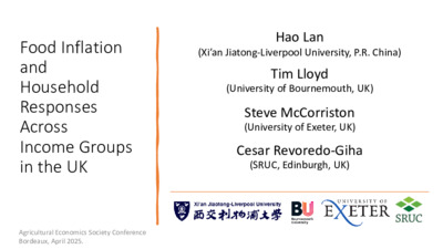 Lloyd, T., McCorriston, S., Lan, H. and Revoredo-Giha, C., 2025. Food inflation and household responses across income groups in the UK. In: Agricultural Economics Society, 14-16 April 2025, Bordeaux, France.