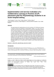 Dunford, A., Uren, C., Blunt, H. and Harry, R., 2025. Implementation and service evaluation of a Collaborative Learning in Practice (CLiP) placement pilot for Physiotherapy students in an acute hospital setting. International Journal of Practice-Based Learning in Health and Social Care, 13 (2), 15-30.