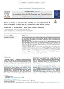 Tafat, W., McDonald, D., Budka, M. and Wainwright, T. W., 2025. Impact of obesity on outcomes after total hip and knee replacement: A study on hospital length of stay and readmission rates in NHS Scotland. International Journal of Orthopaedic and Trauma Nursing, 58, 101216.