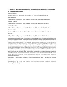 Yankouskaya, A., Babiker, A., Rizvi, S., Alshakhsi, S., Liebherr, M. and Ali, R., 2025. LLM-D12: A dual-dimensional scale of instrumental and relational dependencies on large language models. ACM Transactions on the Web.