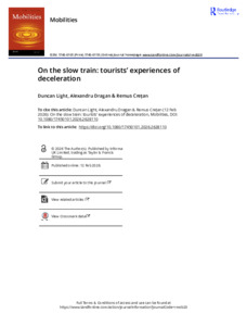 Light, D., Dragan, A. and Cretan, R., 2026. On the slow train: tourists’ experiences of deceleration. Mobilities. (In Press)