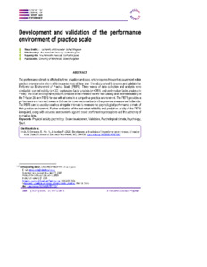 View of Development and validation of the performance environment of practice scale.pdf - Published Version Available under License Creative Commons Attribution Non-commercial Share Alike. 5MB |