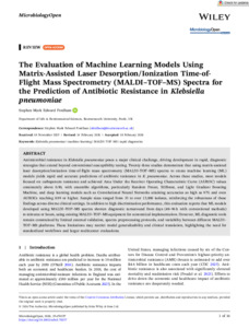 Fordham, S. M. E., 2026. The evaluation of machine learning models using matrix-assisted laser desorption/ionization time-of-flight mass spectrometry (MALDI–TOF–MS) spectra for the prediction of antibiotic resistance in Klebsiella pneumoniae. MicrobiologyOpen, 15 (2), e70257.